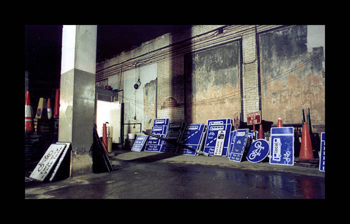 The tunnel is used by Camden Council for storage (hence the street signs on the right). (photo: 2003) |