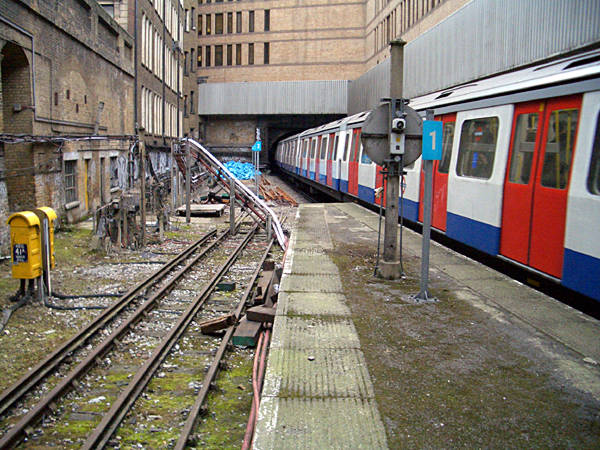![]() The disused terminating platform at Liverpool Street station on the Met/H&C/Circle lines. It was taken out of service on 26/01/1981, according to IanVisits. The covered section of it is no longer visible from the existing platfoms and the land for the open air section has been given over to Crossrail. (photo: 2005) |
