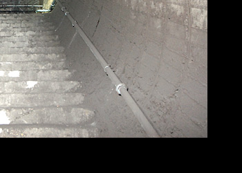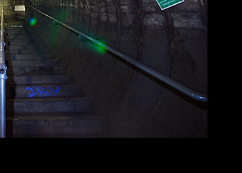 View back the other way from the end of the passage seen above. It crosses over the southbound track. (photo: 2009) |