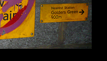 Sign on the northbound platform. The distance in the other direction, i.e. to Hampstead station, is approximately 1400m. (photo: 2009) |