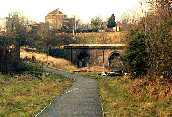 The bridge over Stanhope Road - the line nestling in the valley between Shepherd's Hill and Hornsey Lane.